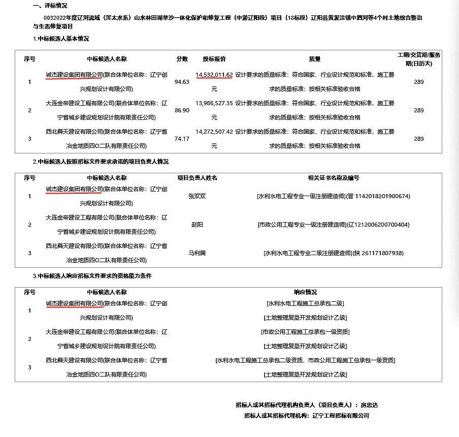 近日,诚杰建设集团与多家实力雄厚的建设单位激烈竞标,最终2022年度辽河流域(浑太水系)山水林田湖草沙一体化保护和修复工程(中游辽阳段)项目(18标段)辽阳县黄泥洼镇中泗河等4个村土地综合整治与生态修复项目成功中标。